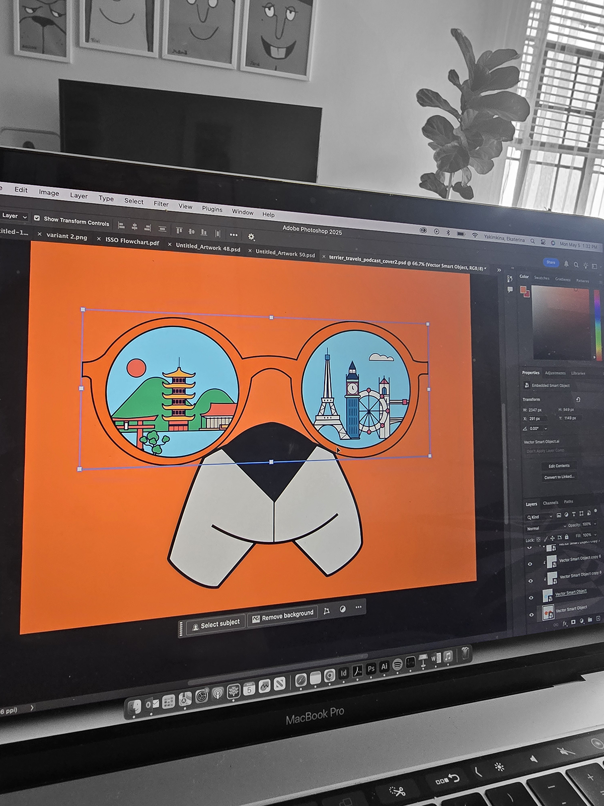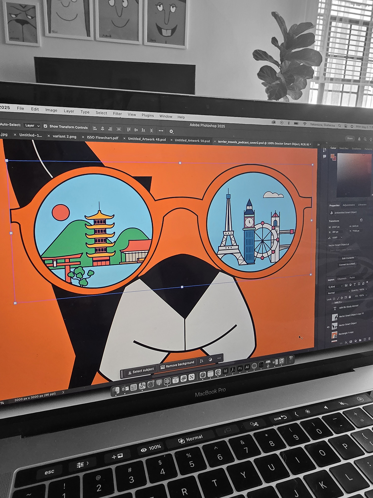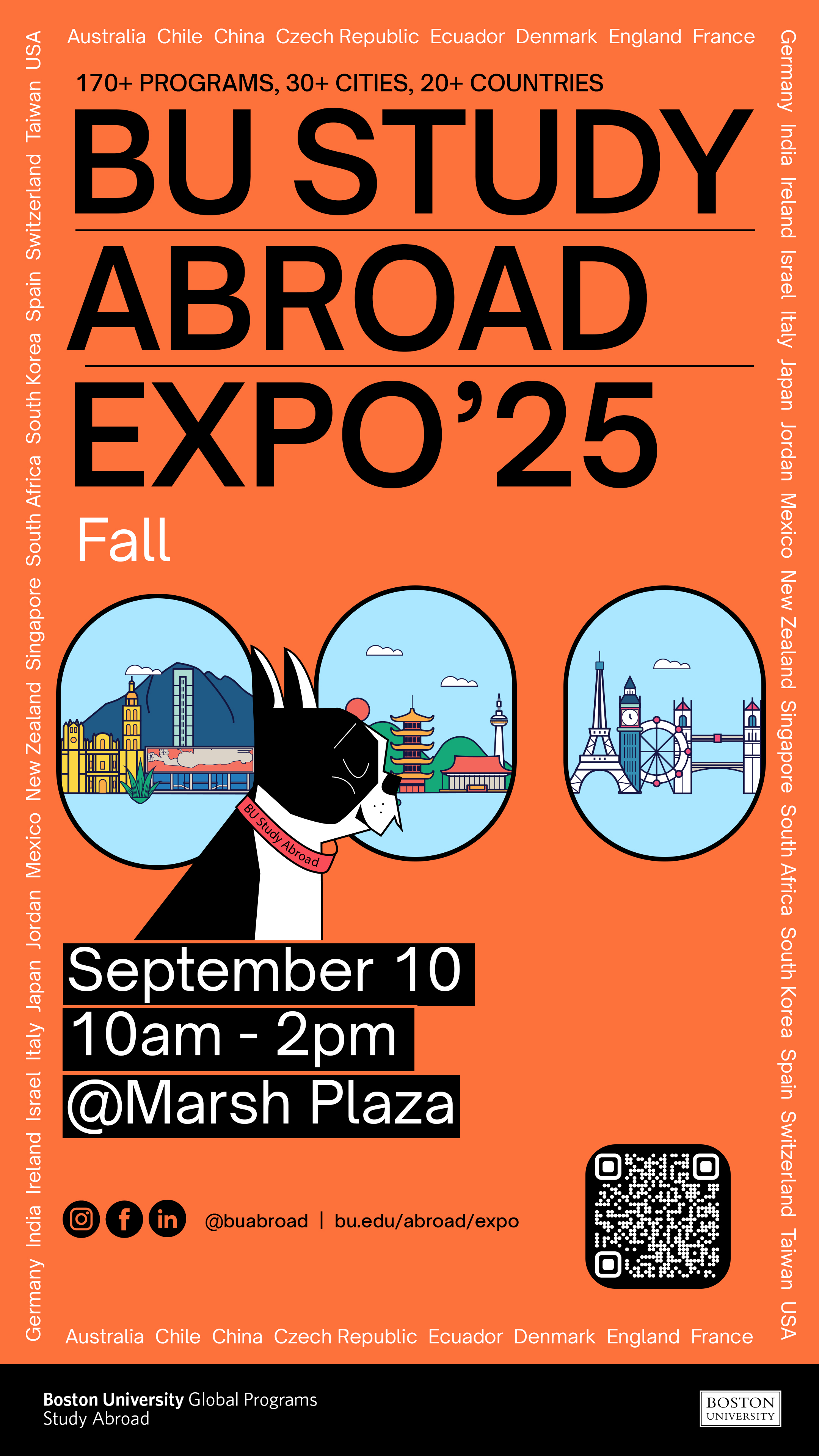 The idea behind this illustration was to bring Boston University’s mascot, Rhett, to life as a global traveler, and to make studying abroad feel exciting and approachable by showing the mascot exploring new places — just as our students do when they study abroad.